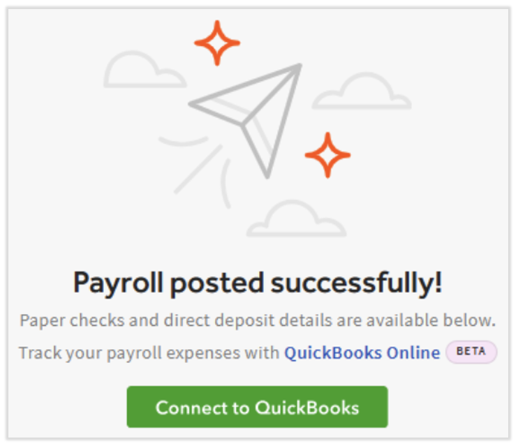 Each time a payroll journal entry is posted to QuickBooks Online, the user who set up this integration will receive an email of the status of the journal entry posting (successful or unsuccessful). If a sync/journal entry posting is unsuccessful, the email will offer details and a path to correcting the issue. For instance, a new line item may not have a GL code assigned, so the email will direct you to the GL mapping page.