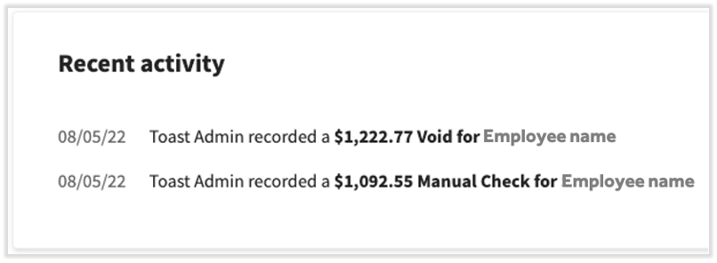 The void will appear on the Preview Payroll and Review and Submit steps of the payroll to which it is attached. On the , it will appear on the Recent Activity tile.