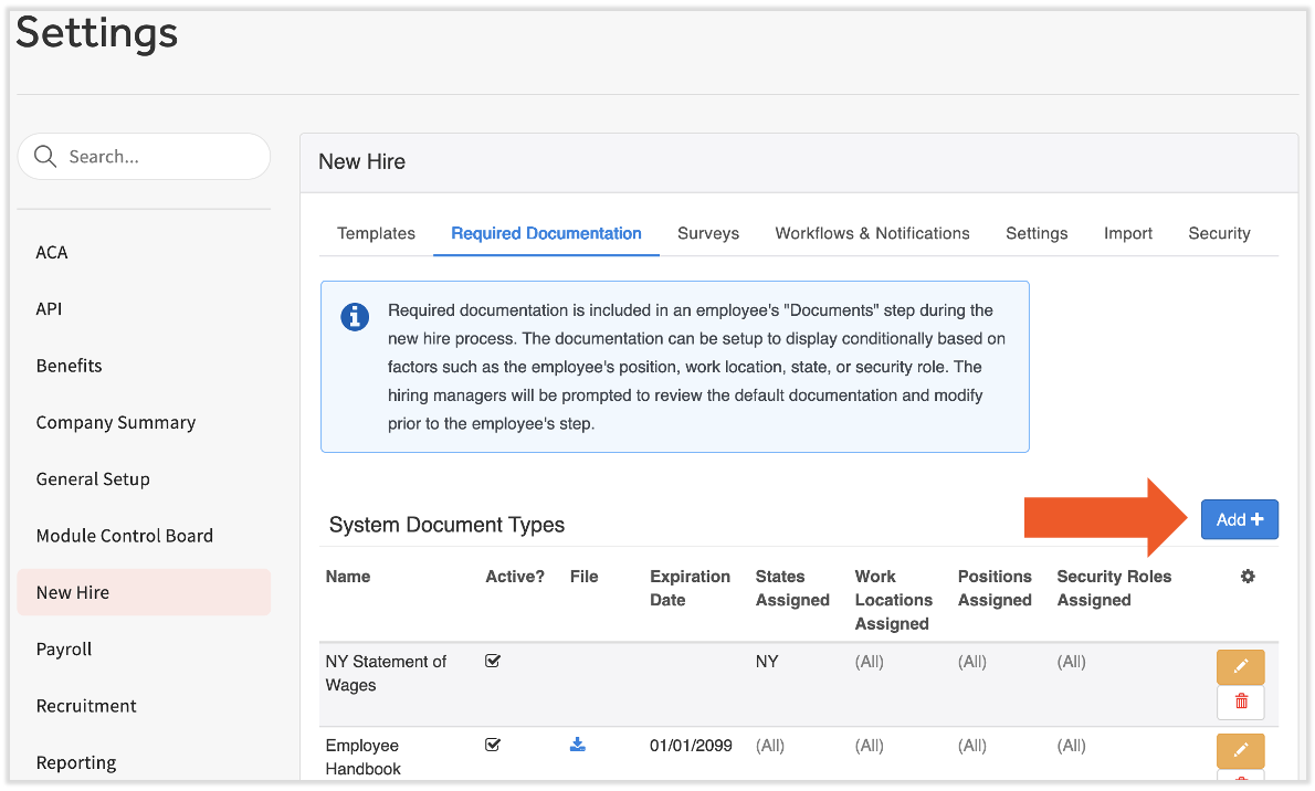 | This article will guide you through the task of adding documents that you'd like new hires to read through during the employee onboarding process of Toast Payroll. If you'd like to upload and deliver a document to employees who have already been onboarded, see Toast Payroll: Get Started with Employee To Do's. |