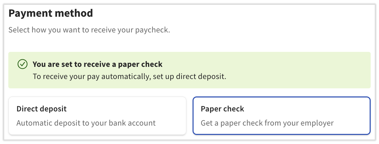 When choosing a payment preference, paying employees electronically through direct deposit allows for faster and more efficient payments and contributes to reduced shipping costs for your business. Employees may also be paid with a paper check or the Toast Pay Card.