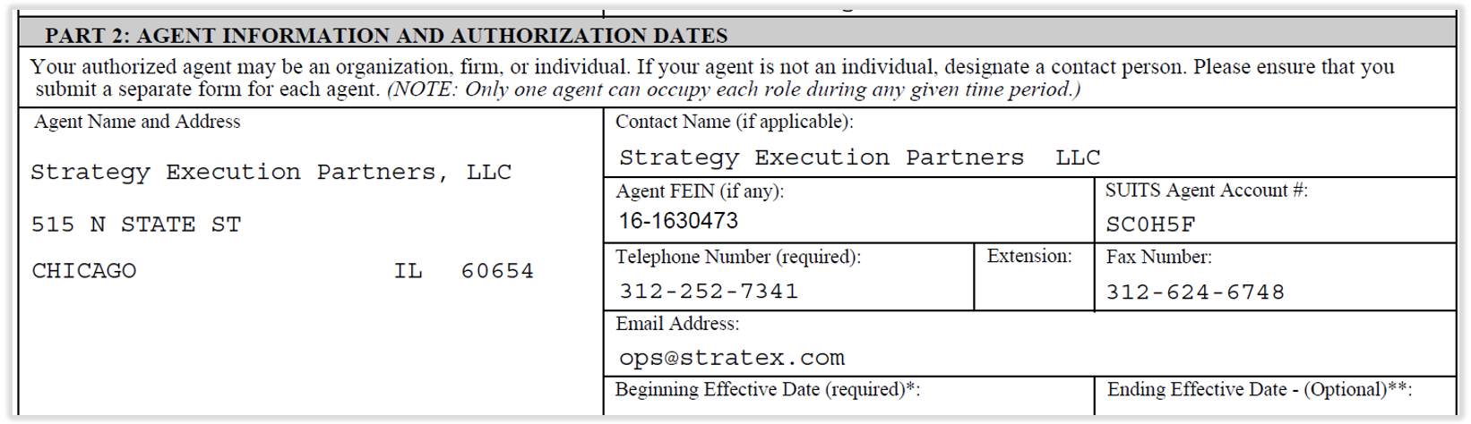 Send an email to to request a pre-filled Employer Representative Authorization form OR complete on your own. If you complete this form on your own, enter the following information: