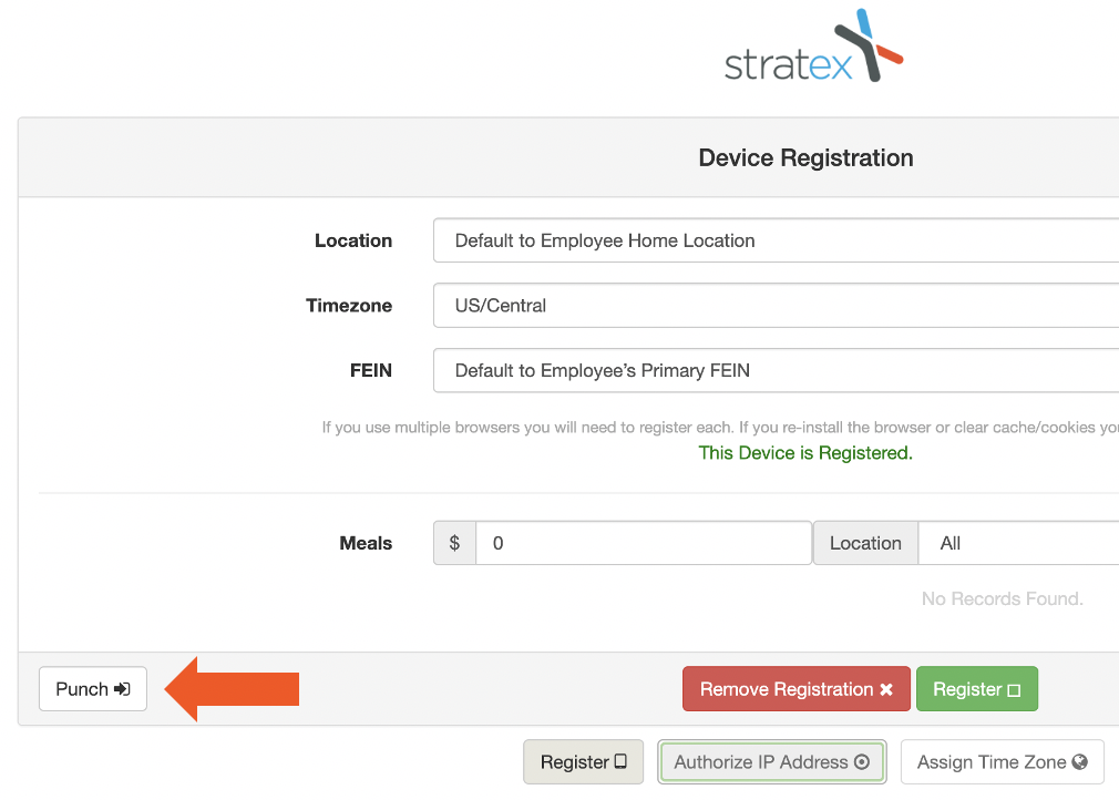 A new computer, mobile device, or browser will need to be registered in order to be used to punch in and out. You will also need to re-register whenever cache/cookies are cleared within a browser. This is a security layer to prevent employees from punching in on unauthorized devices.