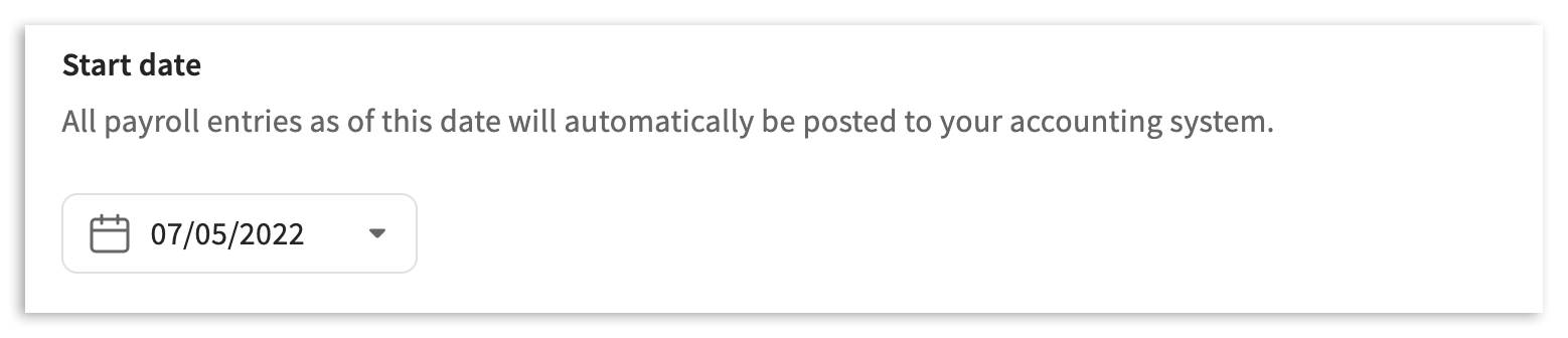 Upon connecting your Toast Payroll account to xtraCHEF, we will automatically pull in all payroll data from the current year. In many cases, you've already posted previous cycles to your accounting system and only need us to begin posting journal entries to your accounting system on a specific date. Select that date here.
