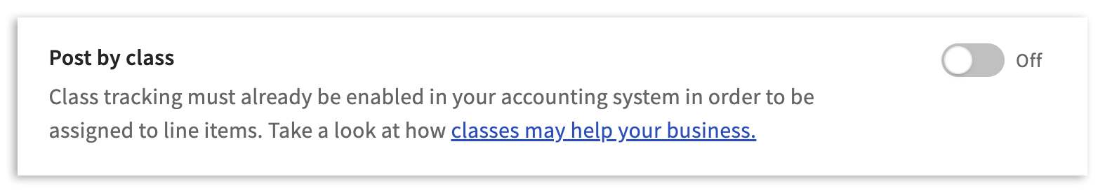If you have class tracking enabled in your accounting software and would like us to assign a class to your payroll journal entries, turn on this feature.