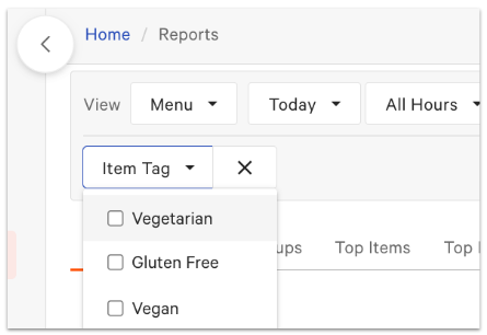Menu item tags allow you to filter your product mix based on a quick view of independently grouped items. You're able to create customized menu reports based on these item tags, and can examine the data for common themes to help adjust your menu to increase profit and choose menu items with better care. For example, you might want to tag vegan items or seasonal specials to look at sales trends. You might want to use item tags to keep track of menu items with expensive ingredients (chicken, steak, fish, cheese, guacamole, for example) and see how sales are trending at your restaurant.