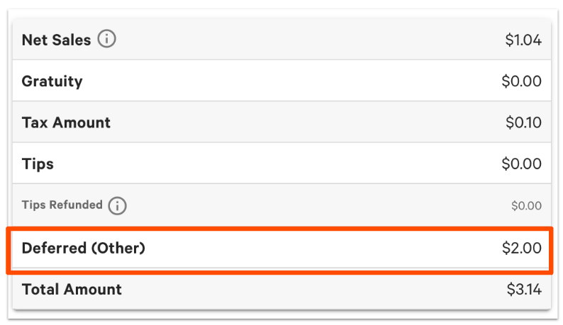 For example, let's say a guest paid $/€/£2 for a Toast Tables deposit. This shows as Deferred (Other) Revenue for today in the Sales Summary report in Toast Web. This is because the revenue has not yet been recognized.