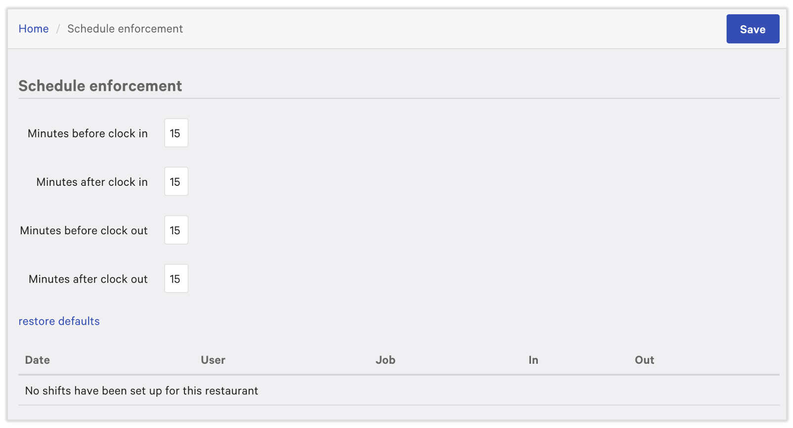 7shifts sends employee shift data to Toast for clock-in enforcement: With Punch Enforce, employees cannot clock in significantly before or after scheduled shifts without manager approval. Restaurants can set a grace period for this within Toast. See for more information.