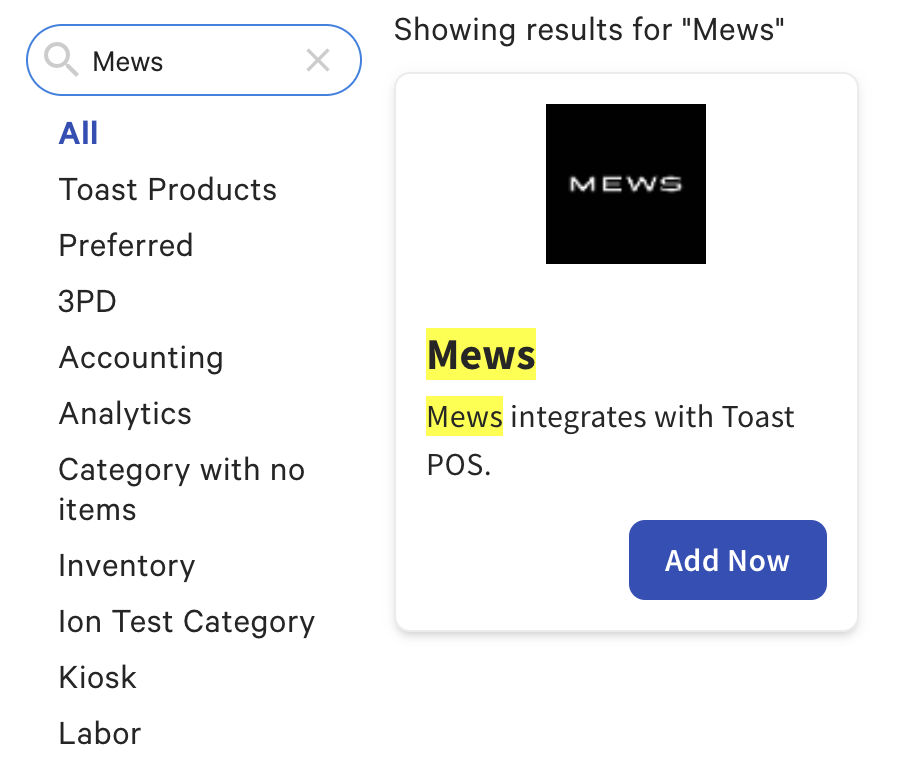 | This integration requires a Hotel PMS Integration subscription, which can be purchased by navigating to Toast Shop. |