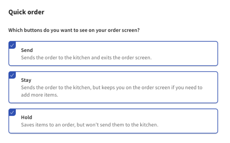 There are two options for using server item firing on the POS. Note that in either case, held items will need to be individually selected and sent: