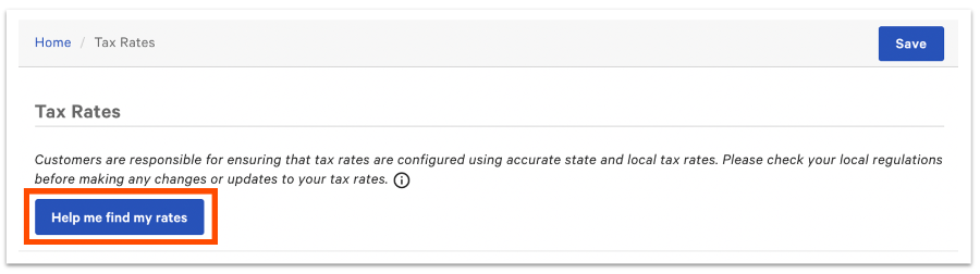 | You are responsible for ensuring that tax rates are configured and updated using accurate state and local tax rates. Tax rates are provided for convenience only, are subject to change, and Toast is not responsible for notifying or updating new tax rates. If you are in Ohio, California, or New York, you may need additional tax rates for takeout and delivery orders. We recommend checking your local regulations to learn about the requirements applicable to your business. |