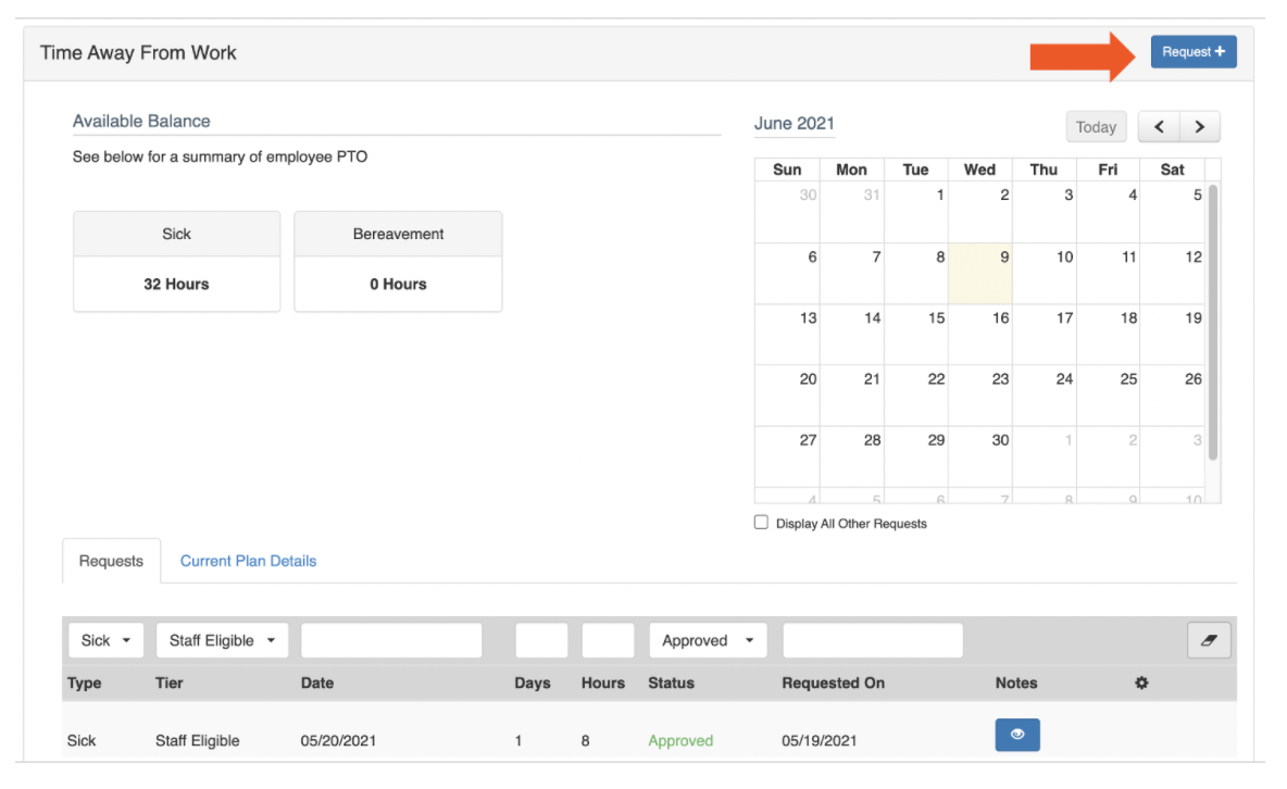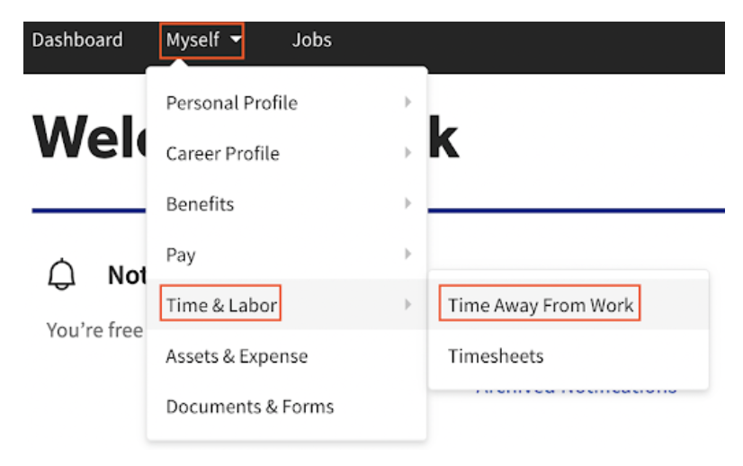 Si su empresa está utilizando el paquete TAFW, los empleados pueden solicitar y administrar sus opciones de TAFW, como tiempo por enfermedad y vacaciones. El tiempo fuera del trabajo se basa en la política de la empresa y requiere la aprobación del gerente.
