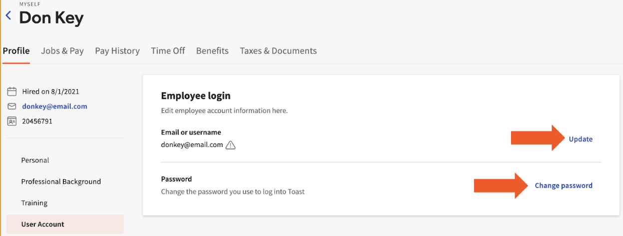 Si conoce a algún ex empleado que esté buscando un W-2 que Toast le habría proporcionado, hágales saber que pueden usar este mismo proceso. Su información de inicio de sesión seguirá funcionando para acceder a los W-2. Si han olvidado sus credenciales de inicio de sesión, deberán comunicarse con su antiguo empleador para solucionar problemas. Toast no puede ayudar a los antiguos empleados a actualizar su información de inicio de sesión.