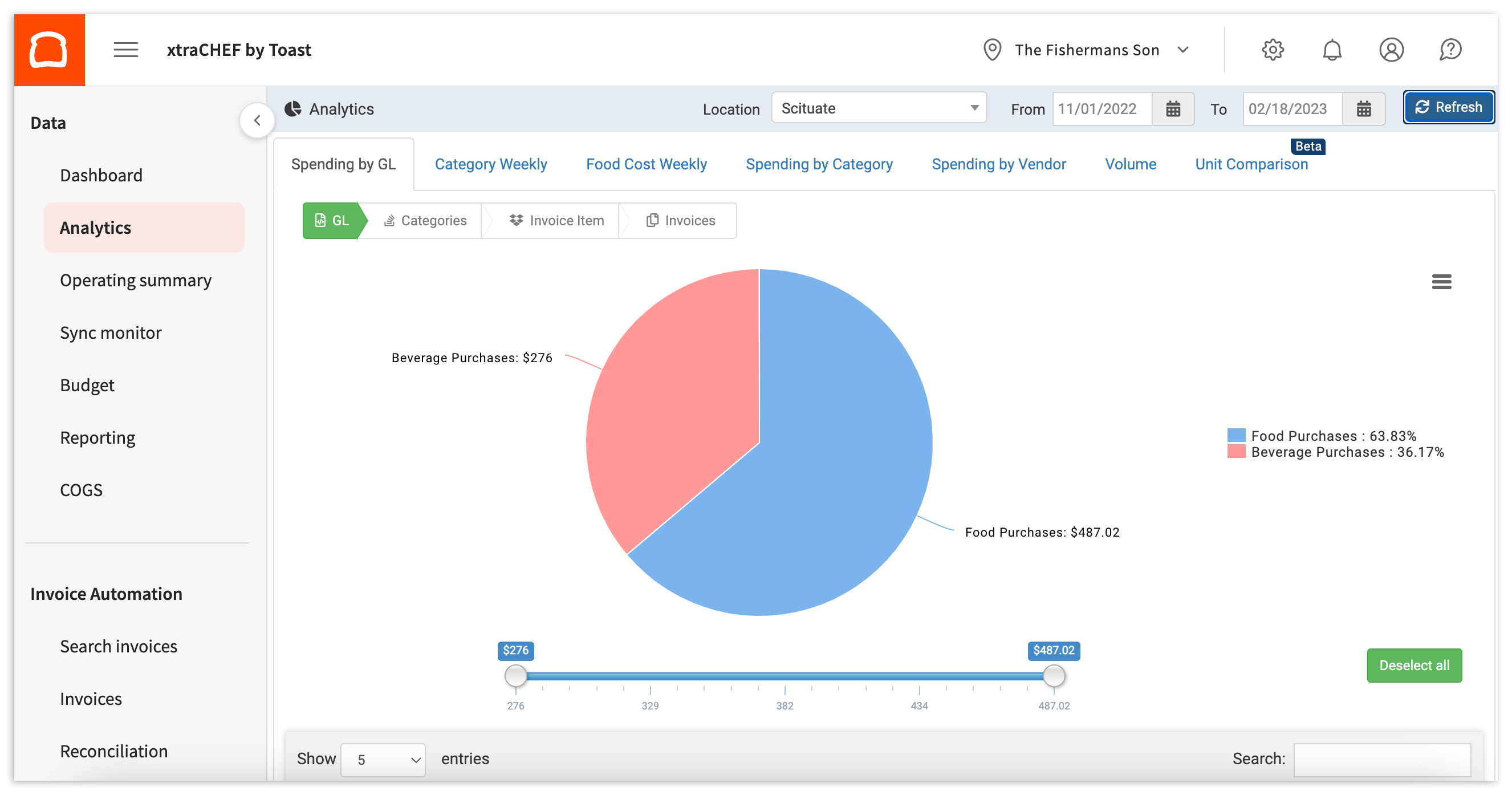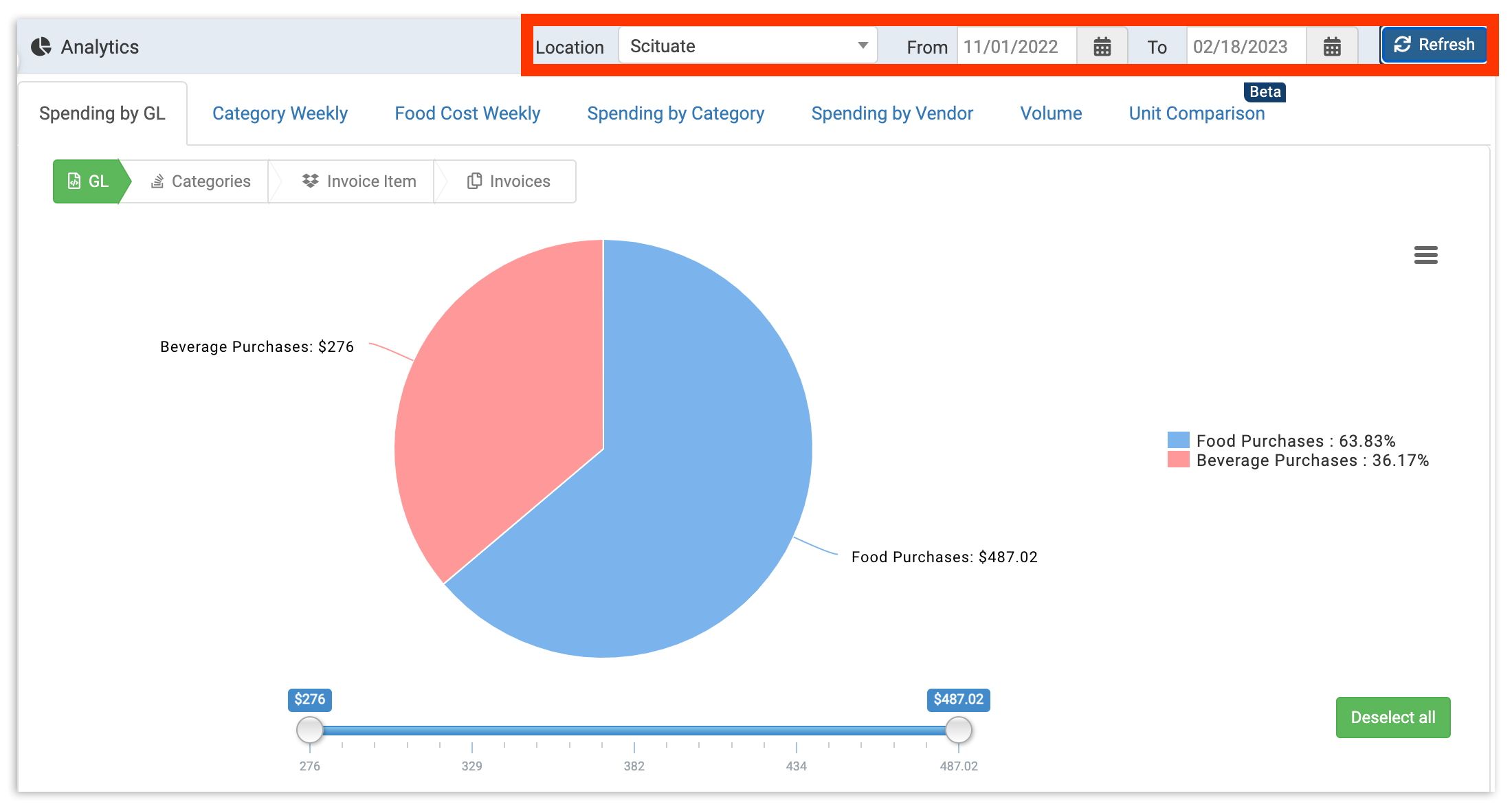 General ledger (GL) codes allow your organization to quickly enter and calculate your spending in specific areas such as utilities, food, and more. Your Spending by GL analytics gives you at-a-glance and granular data on how your spending is distributed across a certain location. In this article, we'll explore how to access your spending by GL analytics and where to find the information you need to monitor and control your operating costs.