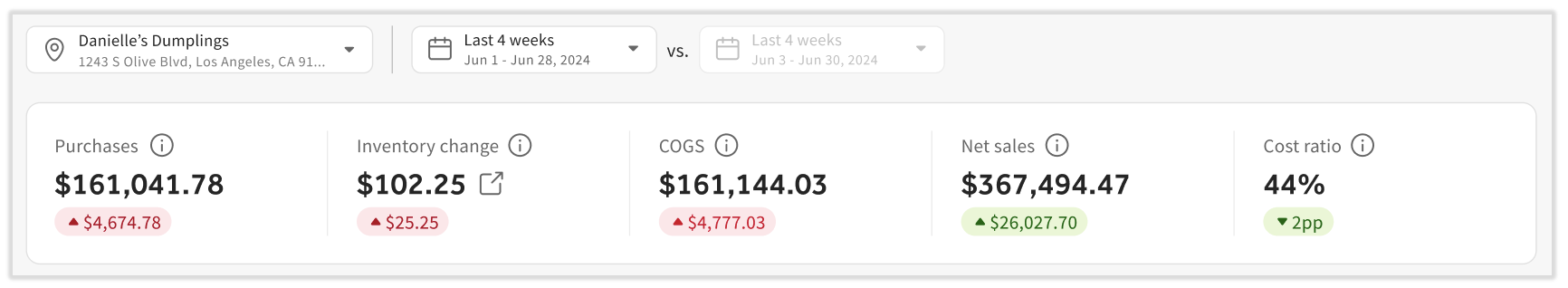 Typically, the lower your COGS, the more profitable your business is. The opposite can also be true, as higher COGS indicate room exists for improvement. If you are utilizing xtraCHEF Recipe and Inventory features, you can go a step further and dive into your to identify specific menu items with unhealthy profit margins or your to track where waste may be coming from.