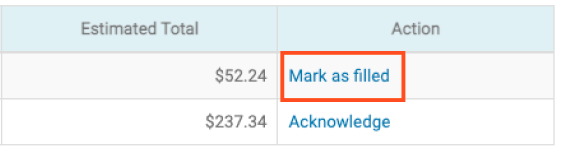 Once you've fulfilled your order and sent it off to your location, select Mark as filled to remove it from your pending list and let the location know their goods are waiting for them.