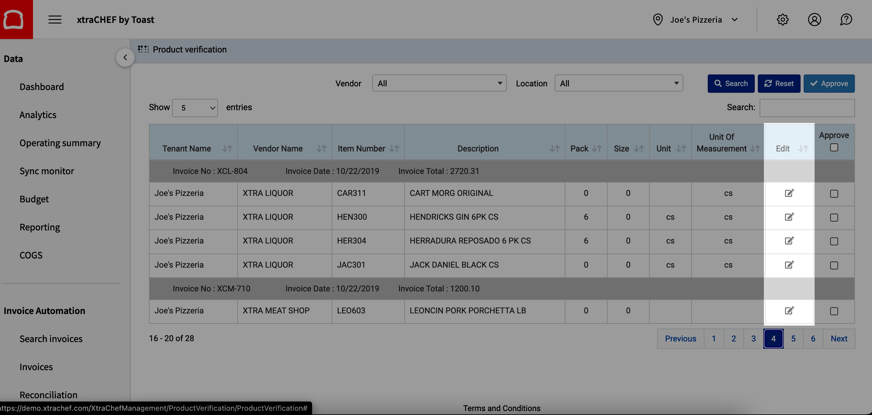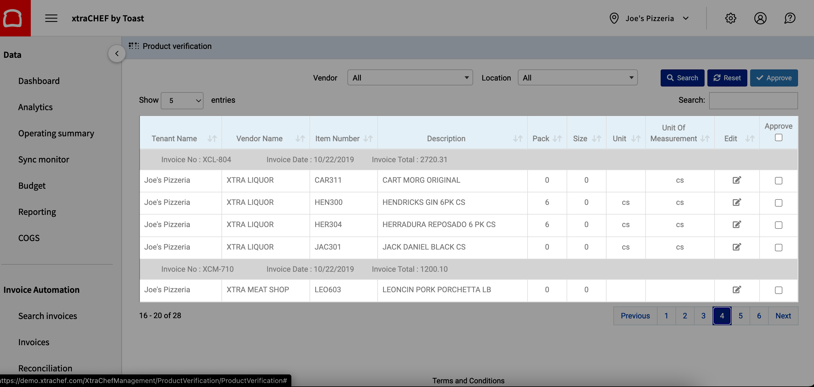 Product Verification adds a touch of human knowledge to xtraCHEF's AI-led automation. More specifically, this function allows you to manually approve line items and ensure that any potential discrepancies don't impact your bottom line or skew Recipe and Inventory reporting. If enabled, It is also a required step for users to reconcile invoices and extract for certain third-party integrations.