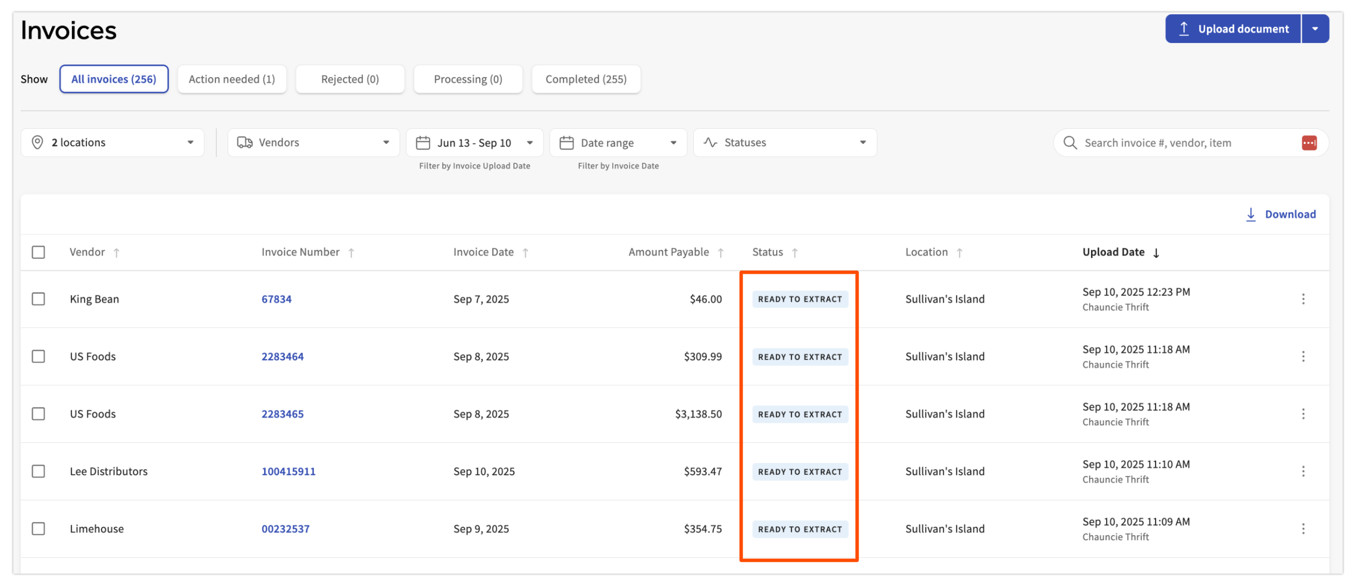 To extract your invoices, look for the ones marked as ready to extract. Select an invoice, and you'll be taken to the Extract Monitor.
