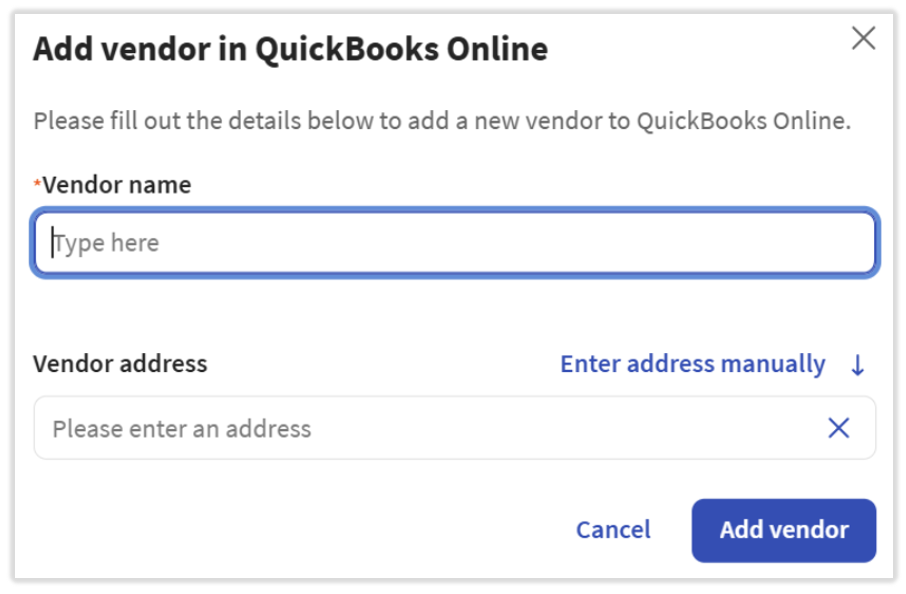 Next, you'll sync your vendors between the two products. Just like before, we will auto-assign any xtraCHEF vendors that exactly match a vendor in QuickBooks, but you may still need to assign some yourself. Select Add vendor to add a new vendor directly in QuickBooks Online.