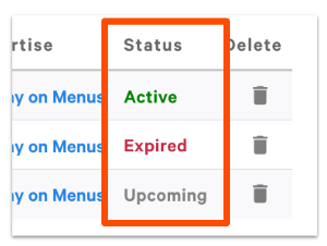 Si quieres detener o discontinuar un código promocional, ve a la página Ofertas en Toast Web y selecciona los tres puntos horizontales donde podrás finalizarlos o archivarlos.