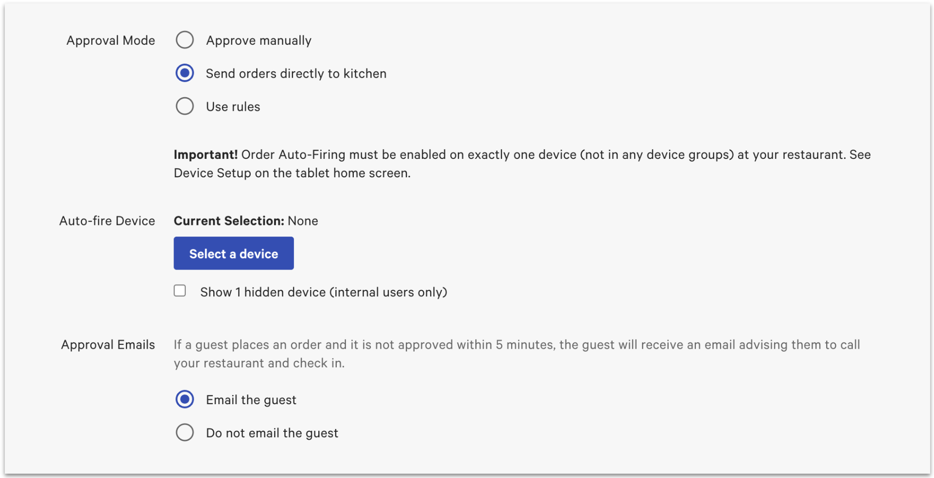 Los clientes reciben correos electrónicos que indican que su pedido digital no está aprobado y que deben ponerse en contacto con el restaurante. ¿Cómo desactivo esto?