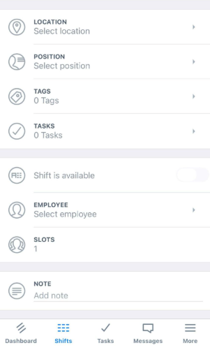 Debes ingresar al menos una ubicación y una posición para guardar el turno. Puedes asignar un empleado más adelante si es necesario.