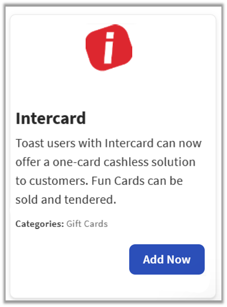 Para habilitar la integración de Intercard con Toast, siga estos pasos:
