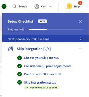 Puedes acceder fácilmente a los pasos de configuración en Toast Web cuando inicias sesión. Una lista de verificación en la parte inferior derecha de su pantalla aparecerá, y habrá un elemento de línea para la configuración de la integración.