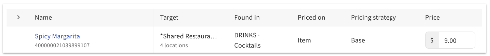 Si tu restaurante utiliza la Gestión de Ubicaciones Múltiples de Toast (MLM) o uno de los suites de Gestión de Restaurantes (aprende más: ), también puedes usar el administrador de menús para programar actualizaciones de precios que se activen en el futuro, permitiéndote controlar cuándo se activan los cambios en tu menú.
