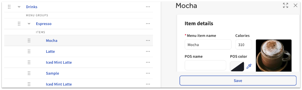El administrador de menús proporciona una forma de ver rápidamente las entidades del menú (artículos, modificadores y niveles de precios) y realizar ciertos cambios en bloque. Esto puede ser especialmente útil para grupos de restaurantes con menús grandes o muchas ubicaciones, permitiéndote ahorrar tiempo gestionando menús al usar herramientas de búsqueda y filtrado para encontrar rápidamente los datos que deseas actualizar. También puedes ir al administrador de menús para previsualizar cómo se verán tus menús en tu POS usando el botón Ver diseño del POS. Para aprender más, consulta .