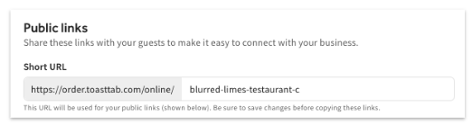 Puedes personalizar la página de pedidos digitales con el logotipo de tu restaurante y una URL de Toast Tab.