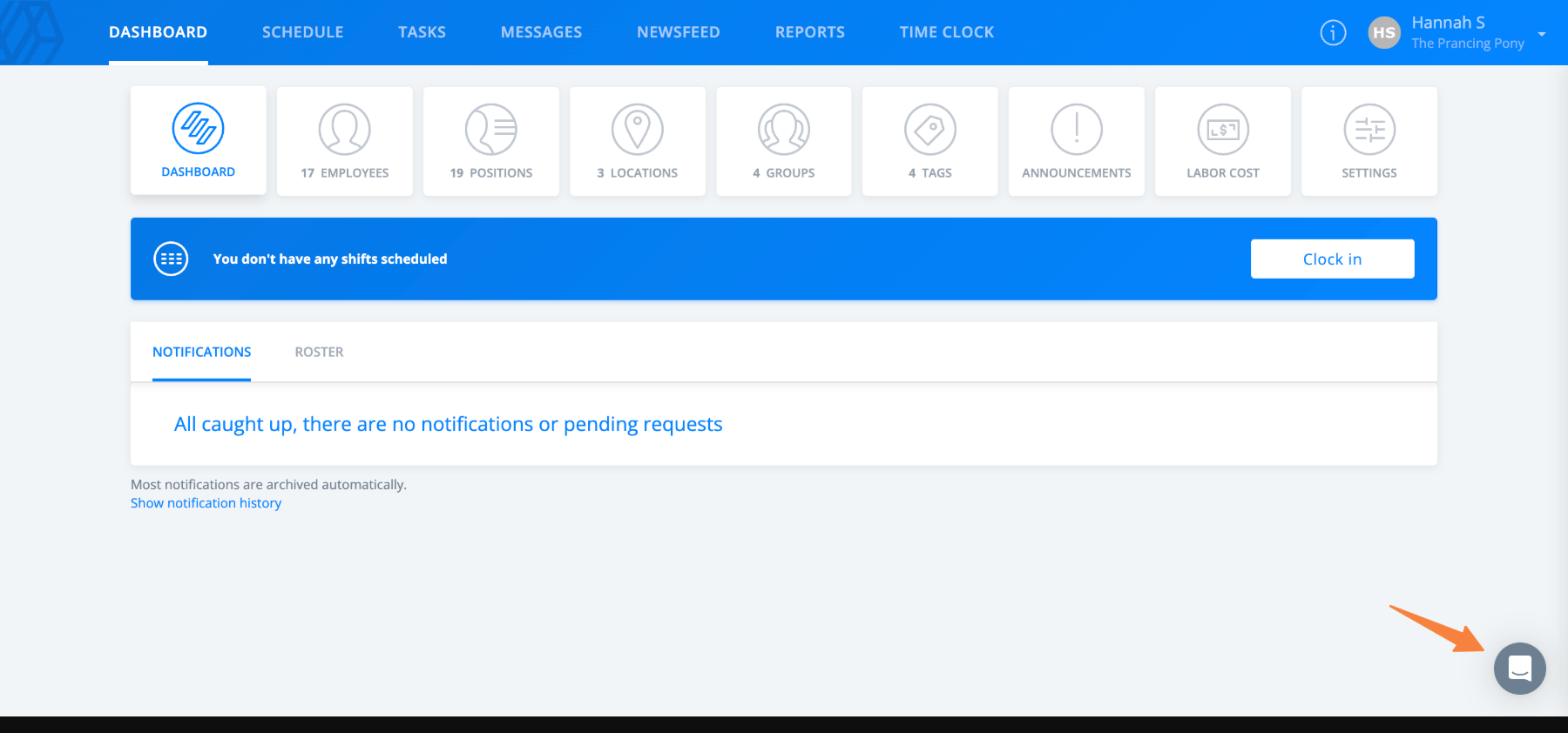 Select the chat icon to connect with Sling Customer Support.