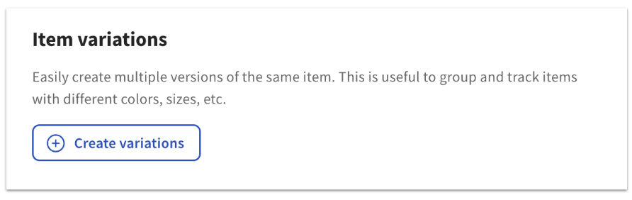 Una vez que hayas configurado tus atributos personalizados, puedes agregarlos a un artículo en la página Detalles del artículo, en la sección Variaciones.