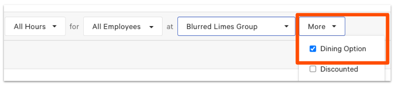 En la mayoría de los informes, puedes seleccionar Opción gastronómica en el Más menú desplegable del encabezado para mostrar las ventas, los pedidos y la información general desglosada por canal. También puedes seleccionar otras opciones para ver una vista detallada de las ventas por área de servicio, por ejemplo.