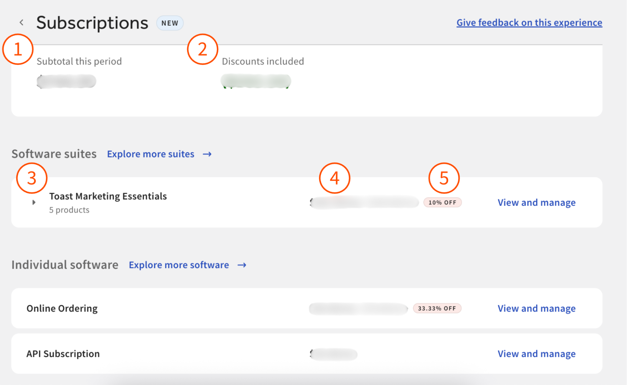 Puedes ver fácilmente a qué productos y servicios te suscribes desde Toast en la página Suscripciones disponible en Toast Web.