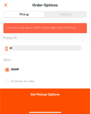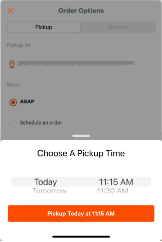 Al seleccionar No, todos los pedidos se cumplirán lo antes posible, su invitado no verá una opción para elegir una fecha u hora. Esto es lo que verán al realizar un pedido en línea: