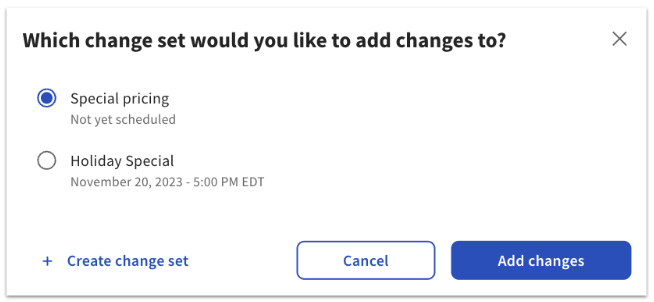 ¡Eso es todo! Si elegiste una fecha y hora para el conjunto de cambios, las actualizaciones se publicarán automáticamente en la fecha y hora especificadas. Puedes seguir agregando más cambios al mismo conjunto de cambios o a diferentes conjuntos de cambios si lo deseas.