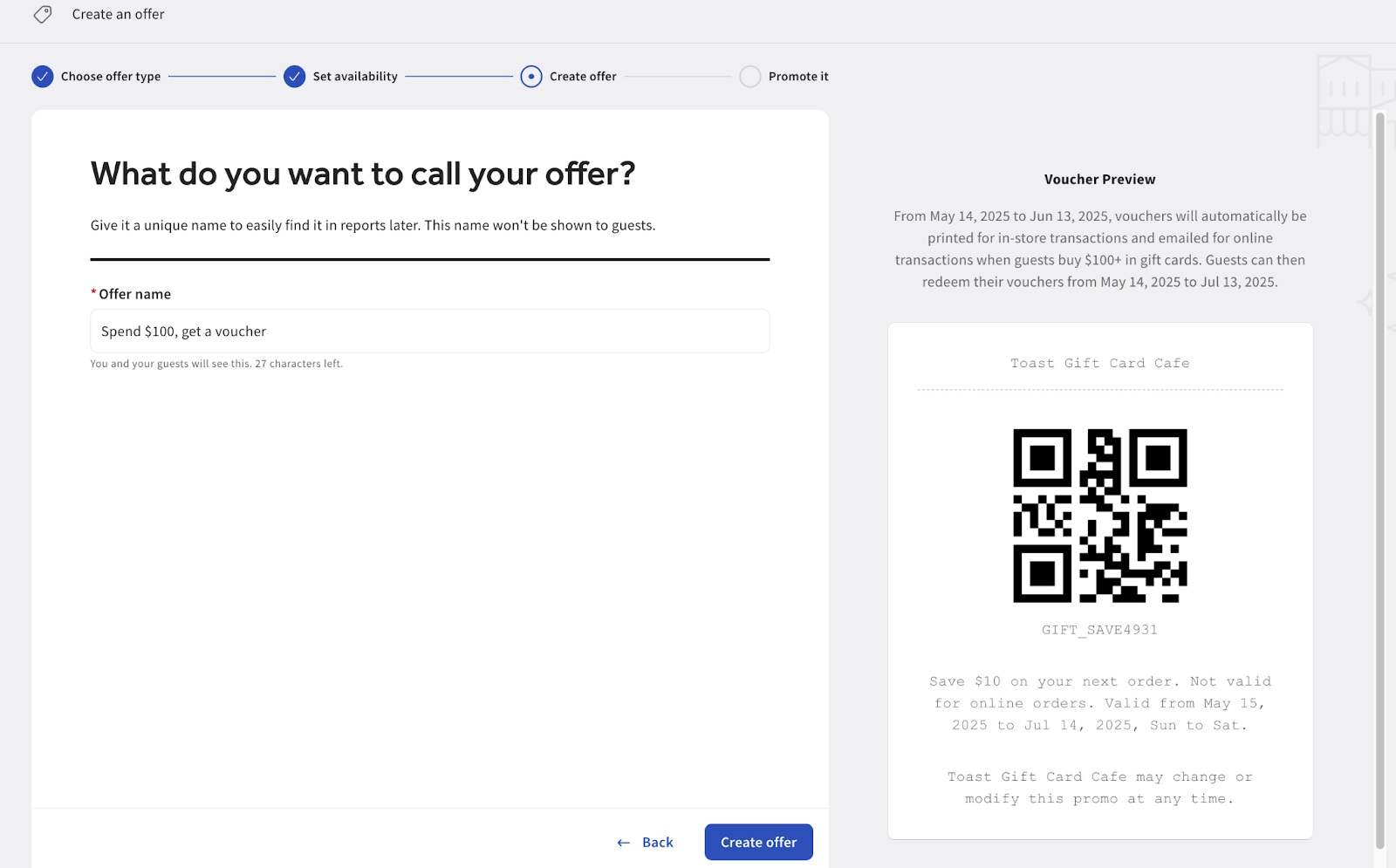 Realiza promociones de tarjeta de regalo de tiempo limitado "Compra X, Obtén Y" en Toast para aumentar las ventas, emitir vales de bonificación y gestionar campañas en múltiples ubicaciones.