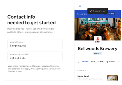 El pedido grupal permite que varios invitados se unan a una sola cuenta desde su propio dispositivo y luego envíen pedidos a la cocina todos a la vez en el mismo ticket. Tenga en cuenta que recomendamos habilitar esta función junto con las pestañas o la función de pestañas preautorizadas mencionadas en la sección anterior. Esto asegurará que los huéspedes tengan la experiencia óptima de Toast Móvil Pedidos y Pagos® en su restaurante.