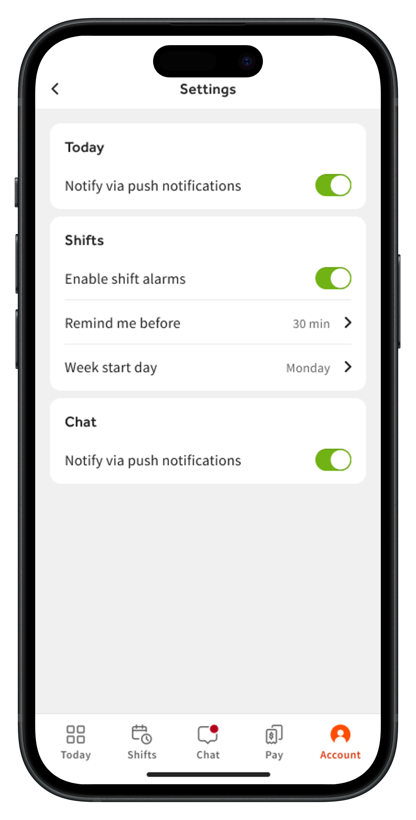 Ve a Cuenta > Configuración para localizar diferentes opciones disponibles para personalizar tu experiencia en la aplicación.