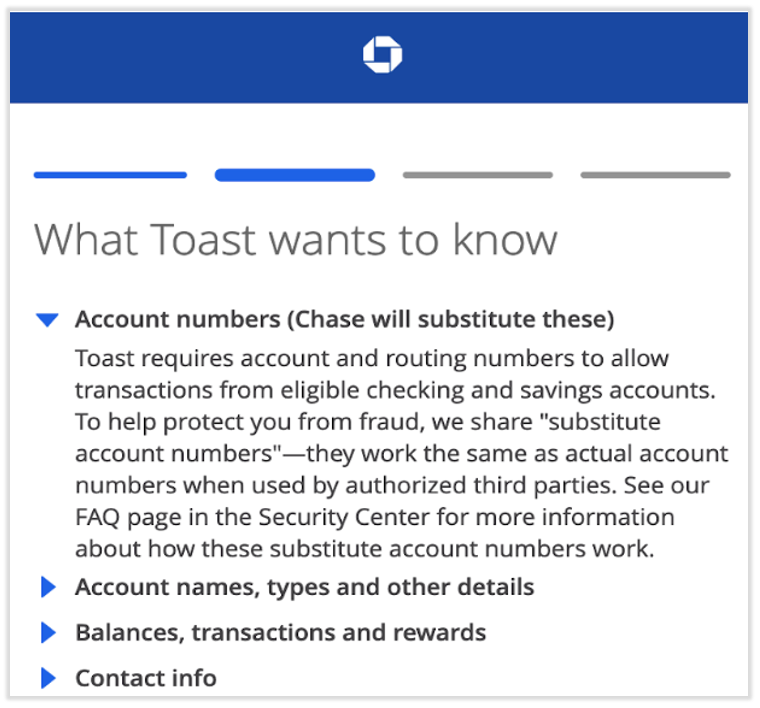 Para proteger a sus miembros del fraude, Chase Bank utiliza números de cuenta cuando proporciona la información de tu cuenta bancaria a terceros autorizados, como Plaid. Estos números de cuenta sustitutos solo funcionan con un tercero designado.