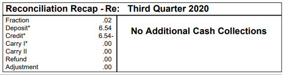Your overall tax variance can be found in the top right-hand corner of the second page of the quarterly tax package. All tax variances (credits or debits) will hit your account mid-month (roughly between the 19th and 25th) that follows the end of the quarter.