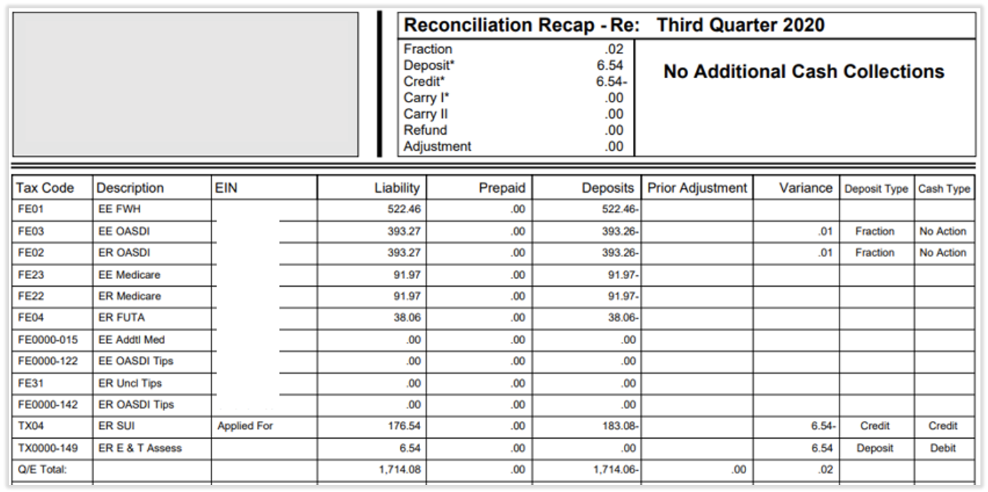 The bottom half of the page is a reconciliation of the amount of taxes you owed to the amounts withheld and remitted to the federal and state tax agencies.