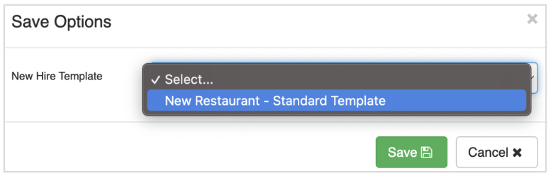 Selecciona Guardar una vez que se hayan solucionado y corregido los errores. Selecciona Nuevo restaurante - Plantilla estándar y selecciona Guardar.