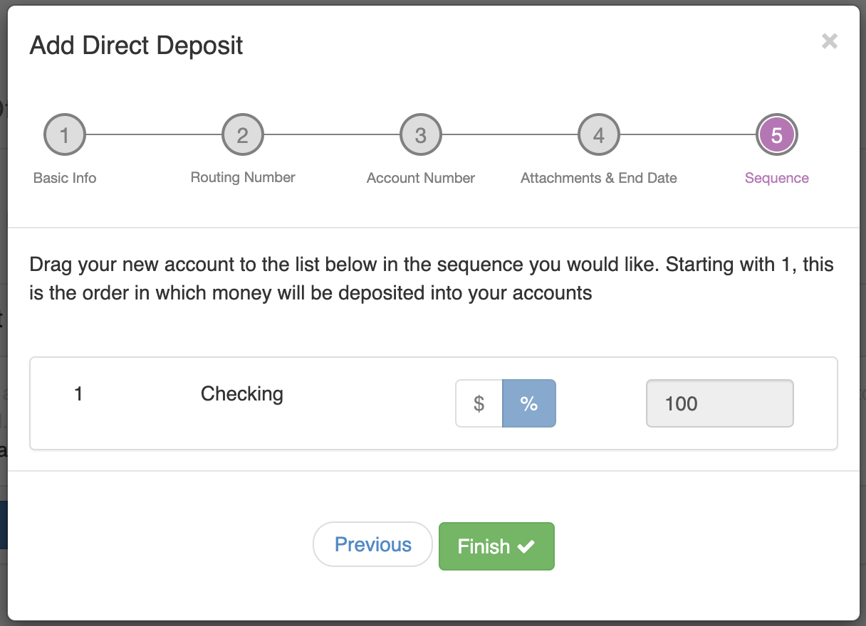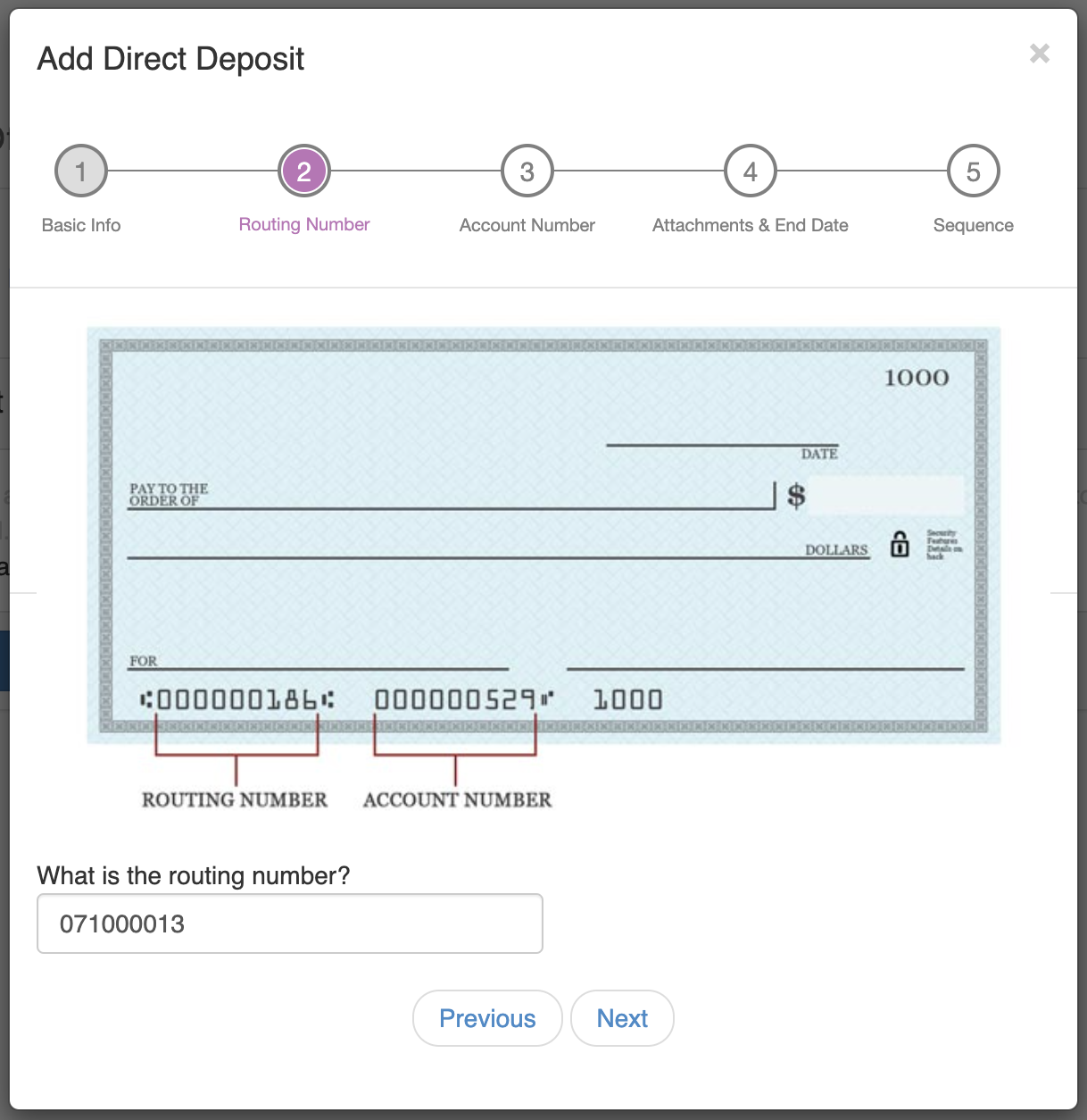 Nota: Los clientes de Plaid no pueden agregar más de dos cuentas bancarias por empleado. Ningún empleado existente que previamente haya dividido su salario por depósito directo entre tres o más cuentas bancarias verá el nuevo diseño de Plaid; seguirá utilizando el diseño anterior que se describe a .