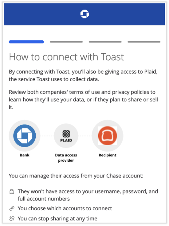 Plaid es líder en el sector en la validación de cuentas bancarias de empleados y ayuda a Toast y a sus clientes a reducir los casos de devolución de fondos causados por rutas incorrectas y/o números de cuenta para depósitos directos.