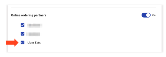 Nota: Aquí, verá el interruptor de encendido/apagado para Uber Eats, que le permite activar o desactivar la integración directa, haciendo que la integración esté disponible o no disponible. Si lo apaga, sus invitados no podrán realizar pedidos a través de Uber Eats. Para más información, consulte .