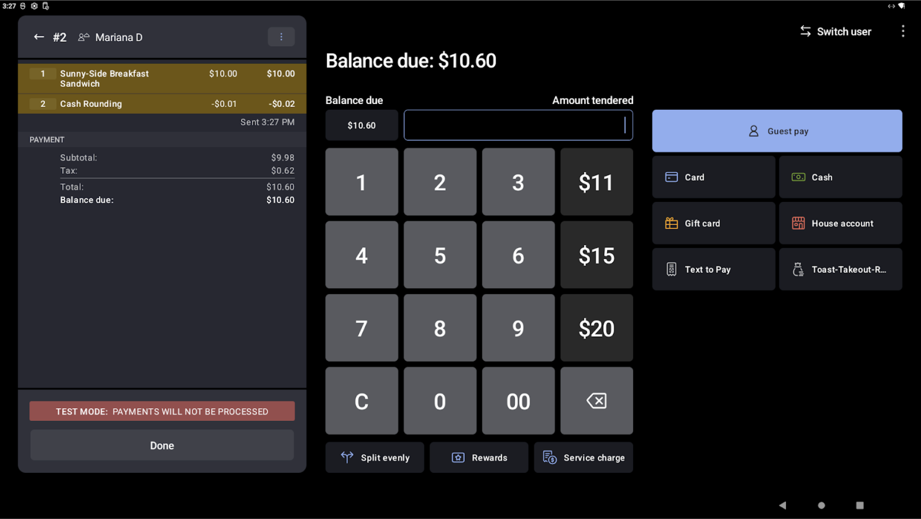 Aprende a usar el redondeo de efectivo en tu Toast POS.