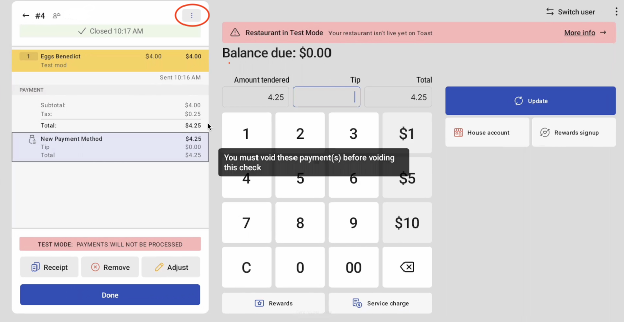 Si tu restaurante no puede Completar un pedido de Uber Eats o DoorDash y necesita anular el pedido en Toast, ahora puedes hacerlo directamente a través del POS de Toast, en lugar de llamar a la línea de asistencia. También puedes seguir este proceso para eliminar los pedidos de prueba cancelados que se muestran como ventas.