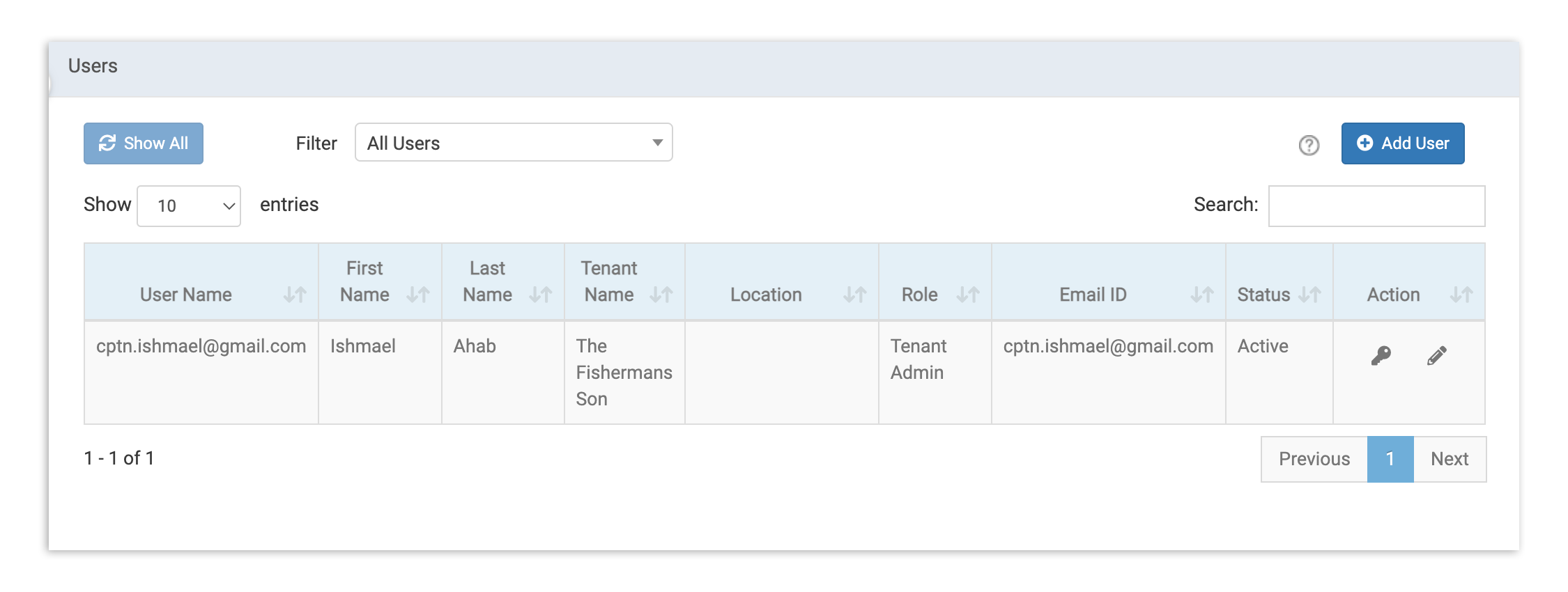 If you are a Tenant Admin, you have the ability to manage user profiles and even assign users new roles if needed. To view all users in xtraCHEF, select the gear icon > Users. Locate an employee by using the search bar.