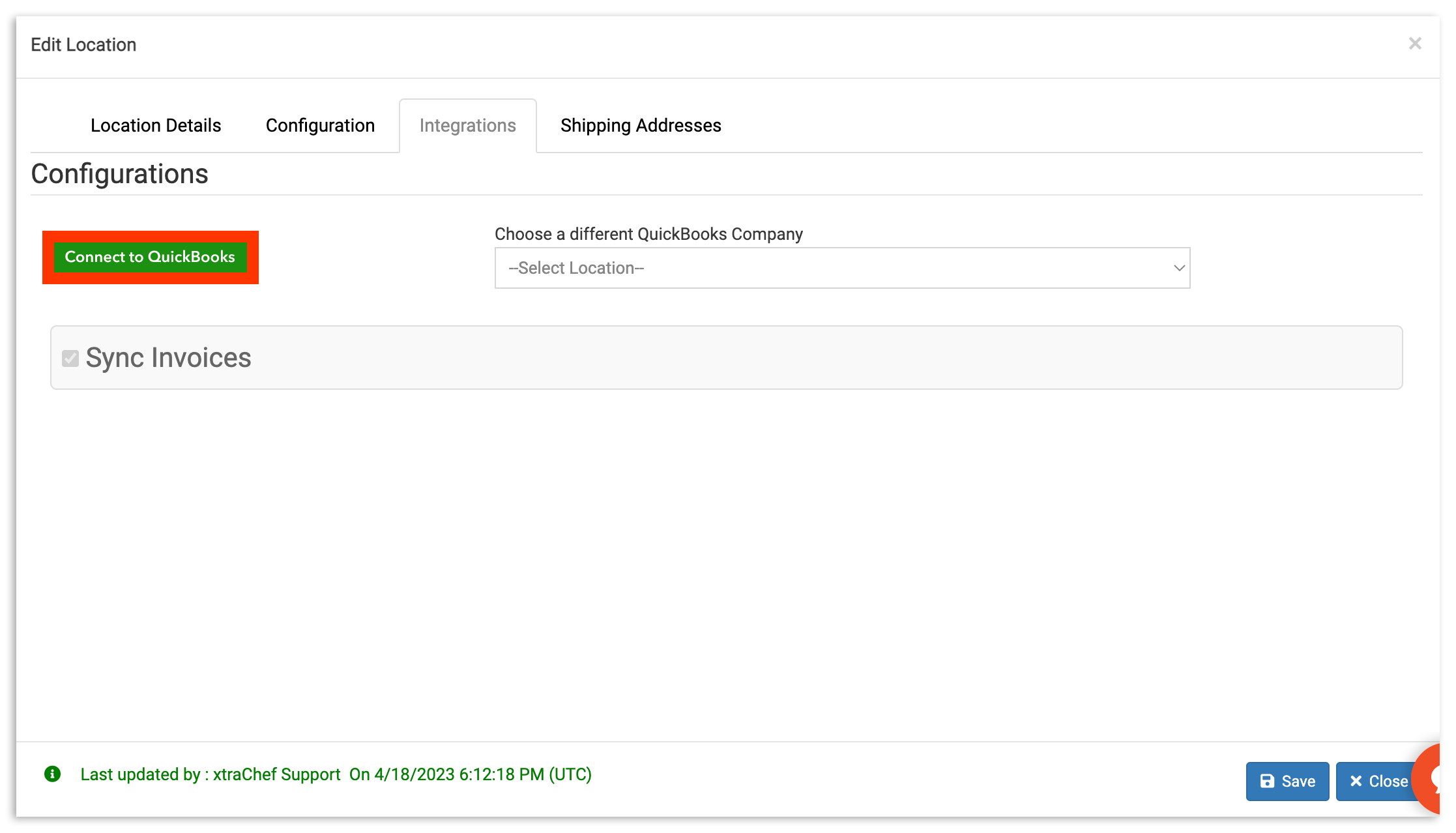 Nota: Omitir esta sección si tienes una ubicación en xtraCHEF o si QuickBooks Online a nivel de ubicación no está activado (opción predeterminada).
